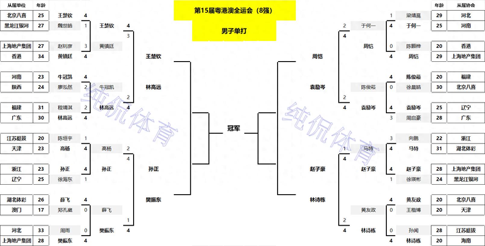 陈垣宇1-4爆冷不敌代表天津队出战的高杨,结果来到1/8决赛,高杨也是没有再进一步,2-4输给了代表浙江队出战孙正;