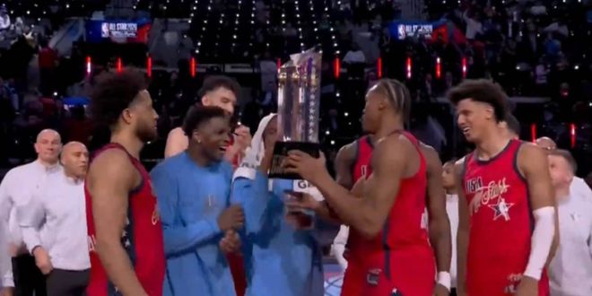 新星队特别是决赛更是打出了NBA全明星近年最残暴的第四节,这帮小年轻全力输出,狂赢星条队47比21。