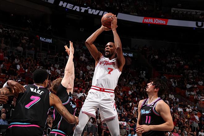 本场比赛中,火箭虽然最后输掉了比赛,但是球队的先发锋线球星凯文-杜兰特(Kevin Durant)的表现还是值得肯定的。杜兰特全场出场37分14秒,投篮20中12,三分线外8中2,罚球6中6,得到了全场最高分32分外加11篮板5助攻1抢断的数据,还有1次失误和3次犯规,正负值为+5。杜兰特在进攻端还是展现出了自己全面的得分能力,他不断通过各种方式拿下了大量的分数,他也是在进攻端为球队提供了大量的支持。不仅如此,他也展现出了一定的传球能力和策应能力。可惜到了比赛最后一节,由于其他球员的表现实在是不太理想,杜兰特遭遇了大量的包夹,他也没有办法在这种情况下保持自己的进攻效率,最终球队也是没有办法保持这样的进攻势头,球队也是输掉了比赛。