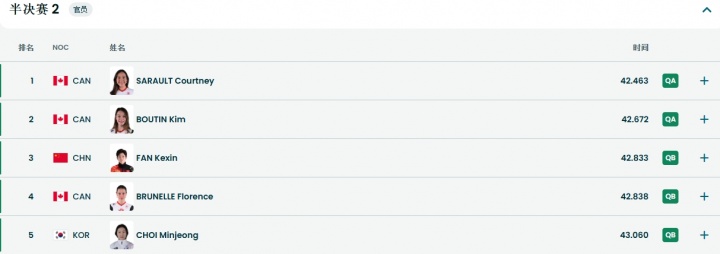 米兰冬奥会短道速滑女子500米半决赛,范可新42秒833获小组第三,无缘决赛。