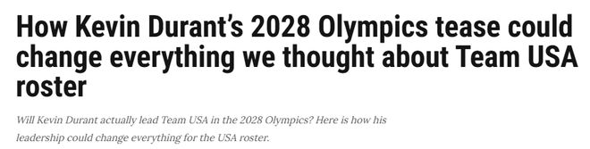 话已至此。到2028年夏天,杜兰特将年满39岁、即将40岁,但他仍想出战奥运。只要保持健康、且不改变主意,杜兰特将会成为那支美国队的队长,占据12人大名单中的一个宝贵席位,在主场球迷面前捍卫金牌。