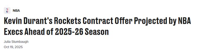 杜兰特最近在接受《体育画报》的曼尼克斯采访时表示,他的目标是加入一支不需要放弃太多关键球员来得到他的争冠球队。如果将同样的原则应用于他的续约,杜兰特可能会决定放弃一些薪水,以提高他在休斯敦夺冠的机会。