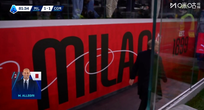 意甲第24轮,AC米兰1-战平科莫,莱奥进球,迈尼昂失误,阿莱格里红牌。