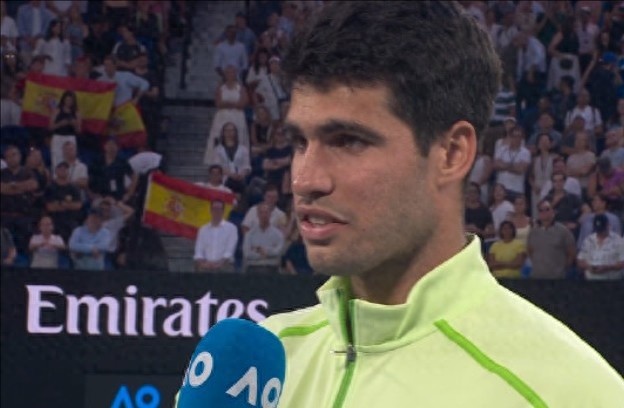 直播吧1月30日讯 在阿尔卡拉斯3-2击败兹维列夫,晋级澳网决赛后,他接受了场边的采访。