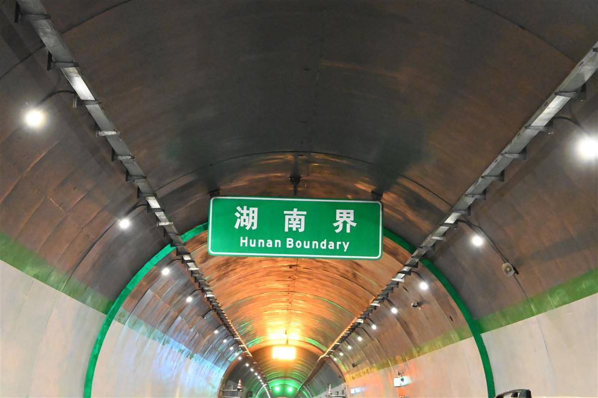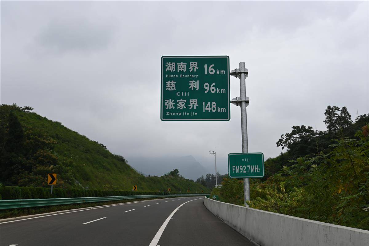 顺着呼北高速鄂湘界段向湖南出发,走出约2公里,一个醒目的标识牌就出现在了眼前:“湖南界16公里、慈利96公里、张家界148公里。”继续往前走,麒麟观隧道、南河大桥、南河岭隧道……进入炉红山隧道,“湖南界”的标识牌就在隧道的正中间。