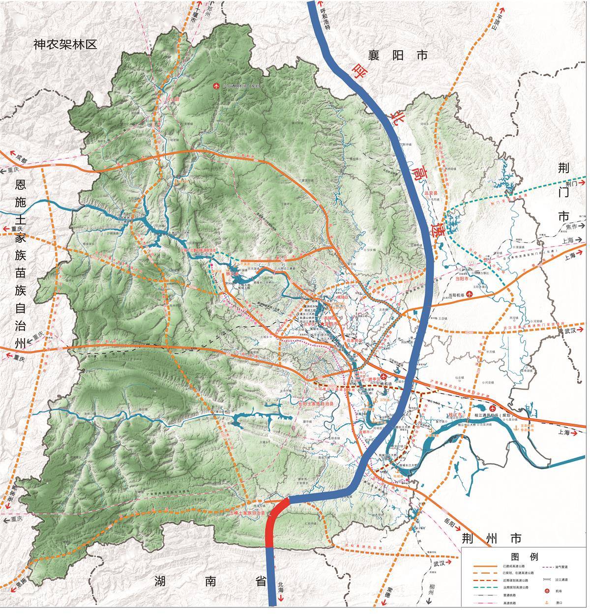 G59呼北高速宜昌境内路线走向图,标红部分为鄂湘界段。