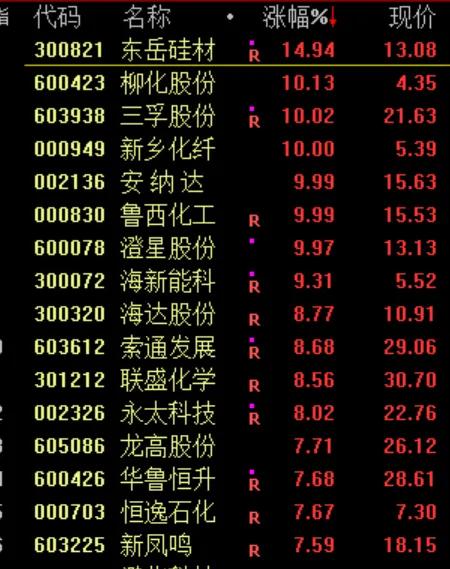 化工股延续强势,鲁西化工、澄星股份等封板。