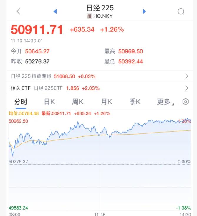 亚洲市场上,首尔综合指数涨超3%,日经225指数涨超1%。