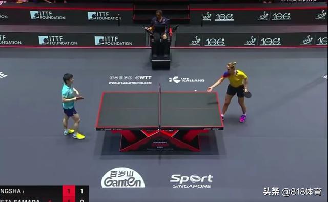 第一局,孙颖莎以11-4迅速拿下,第二局,萨马拉在4-7落后时不急不躁,连续追分,结果以11-9扳回一城,大比分1-1。