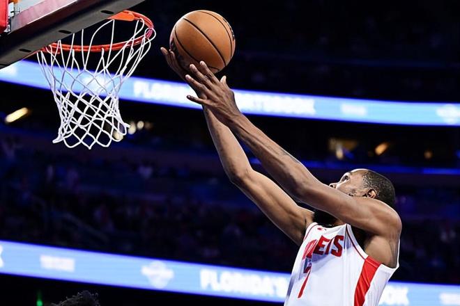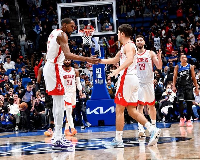 本场比赛中,火箭的锋线球星凯文-杜兰特(Kevin Durant)又一次起到了中流砥柱的作用。杜兰特全场出场39分33秒,投篮28中14,三分线外10中2,罚球10中10,得到了全场最高分40分外加8篮板3助攻2抢断的数据,还有2次失误和1次犯规,正负值为+10。杜兰特在进攻端还是展现出了自己全面的得分能力,在手握大量球权和大量出手机会的情况下,杜兰特也是拿到了大量的分数,起到了关键性的作用。杜兰特在其他方面的表现也算是中规中矩,而且他在比赛最后一节更是单节拿下了14分,成为了球队完成逆转的关键人物。不夸张地说,要不是有杜兰特这样强势的表现,火箭想要在局面一度不利的情况下最终完成逆转,也不是一件容易的事情。