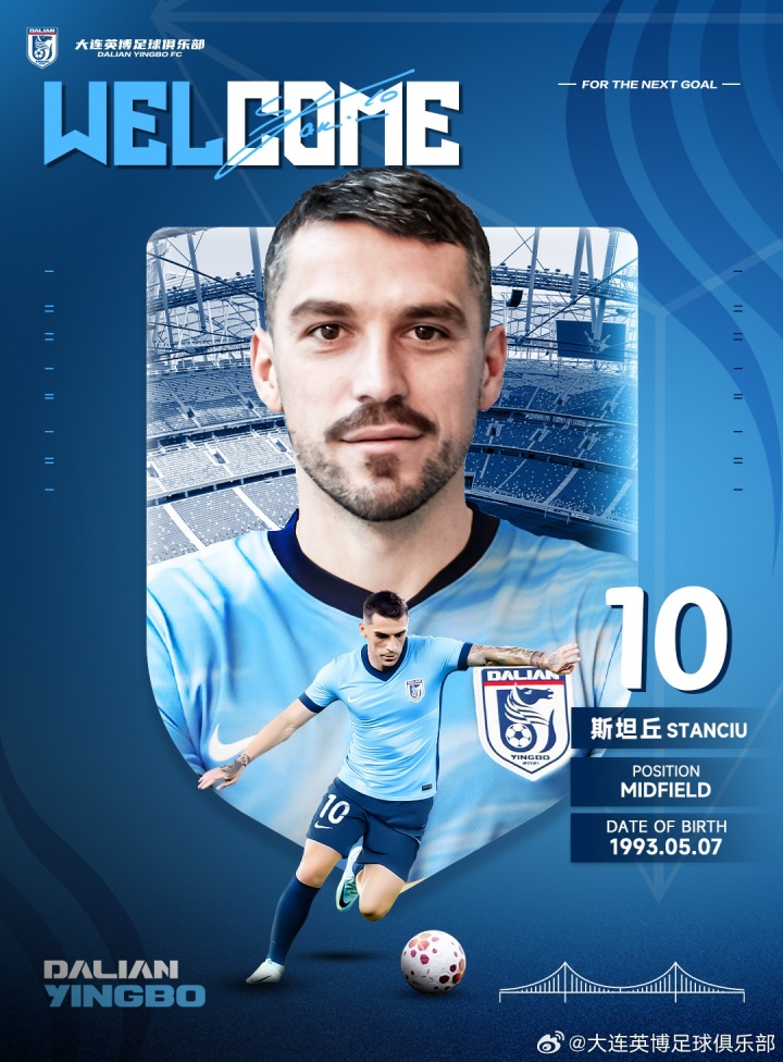 大连英博官方宣布,签下32岁的罗马尼亚国脚、中场球员斯坦丘。