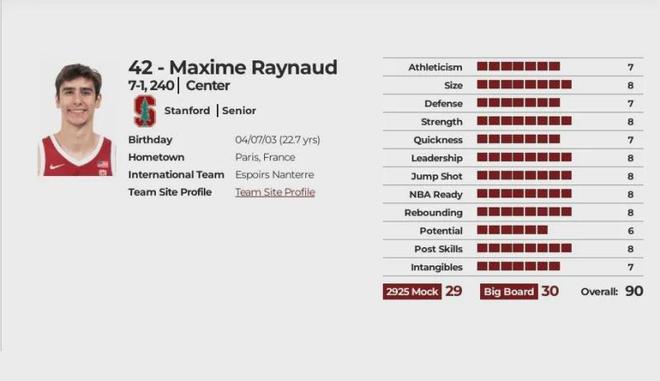 最近波特兰开拓者双杀萨克拉门托国王队,但遗憾的是杨瀚森并没有获得上场机会,相反在国王阵中和小杨同届的次轮42顺位秀中锋马克西姆-雷诺获得了大量出场时间,他在最近3场比赛中场均拿下19.3分12篮板的大号两双数据,赛后在美国论坛上有国王球迷杀人诛心的说道:“杨的首轮16顺位秀应该是马克西姆-雷诺的.”那现实真是这么残酷吗?今天的球星上上测就为大家带来雷诺的数据分析.