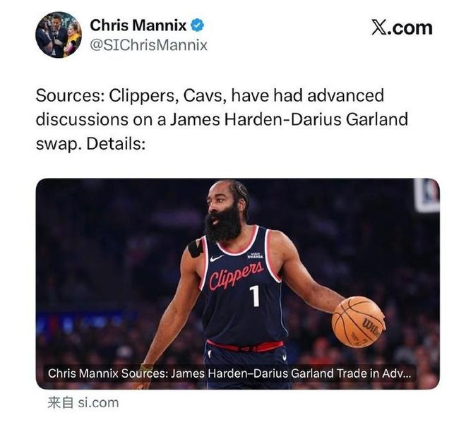 北京时间2月3日,《体育画报》名记Chris Mannix带来重磅消息,骑士与快船已就哈登与加兰的互换交易展开深入谈判,多位消息人士证实,这笔涉及两位明星后卫的交易有望在交易截止日前正式官宣。同日,哈登因个人原因缺席快船对阵76人的比赛,名记Shams补充报道,哈登与快船双方正全力推动交易达成,只为让这位昔日MVP更换新的球队环境。随着交易传闻逐渐升温,这笔看似双赢的互换交易,背后实则暗藏机遇与隐患,无论是对志在夺冠的快船,还是渴望突破的骑士,都将产生深远影响。本文将结合双方球员现状、球队体系需求,全面剖析这笔交易对两支球队的利弊所在。
