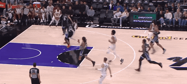 第四节加雷特变了招,蹲守篮下护筐,靠基昂的猛犬追缠,解决了国王的抛射。这是骑士第四节逆转的根基。