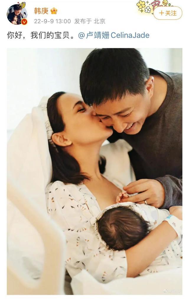 今年5月4日,韩庚就官宣了妻子卢靖姗怀二胎的消息。他转发了二胎B超照片,并表示“我们又升级啦”。