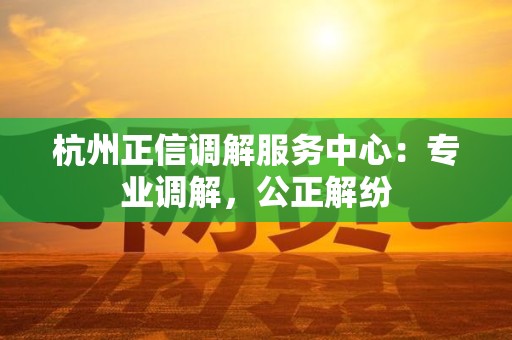 再次强调杭州正信调解服务中心,真的是“专业调解,公正解纷”的典范,有难题找他们,一切都会迎刃而解!