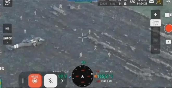 当地时间10月31日,由乌军消息人士提供的视频截图据称显示一架直升机及部队部署在红军城。图为外媒报道配图