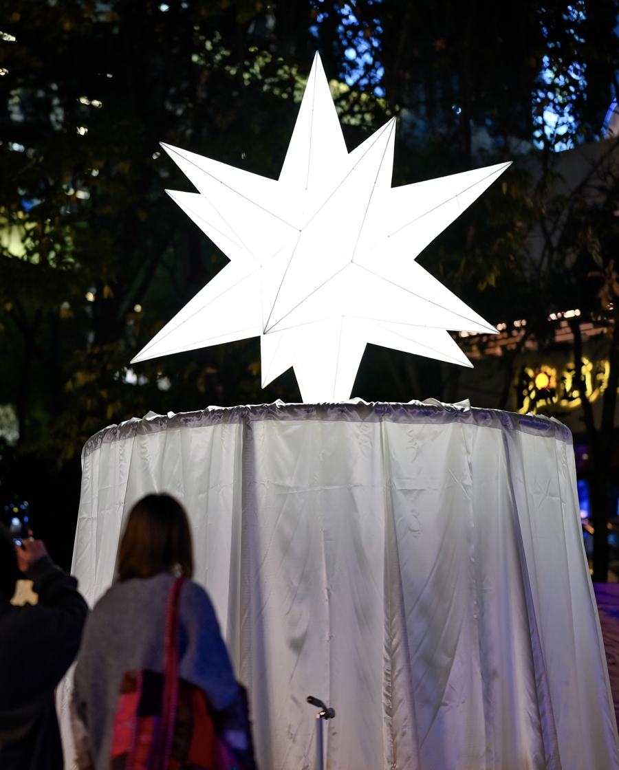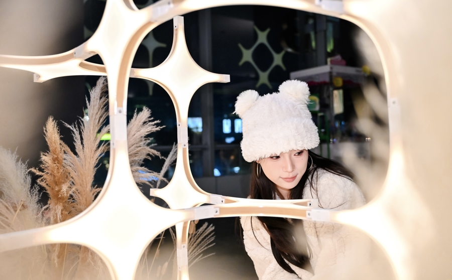 活动期间,虹桥新天地联动上海大学上海美术学院、同济大学、中国美术学院与艺术家幽灵电力,共同呈现4组兼具艺术性与互动性的光影交互装置。上海大学上海美术学院在商场南区中庭打造“‘新’运松林”,邀请客人参与搭建由环保彩绒板组成的5米高“许愿林”,营造链接希望与互动的公共艺术实践;同济大学郝洛西教授团队在南区户外灵感花园打造“‘新’语流光”,观众在荧幕前挥动手势即可触发吉祥话,以科技诗意连接个体,打造沉浸式情感体验;中国美术学院薛梦婷、王郅之、章俊杰创作的“竹织星野”,以光影竹编构造星夜梦境,同时该区域联动北京微爱基金会发起“微爱聚光”公益活动,将消费行为转化为善意传递;艺术家柴浩然(幽灵电力)的作品“骑到星星升起”亮相北区,观众围绕帷幕骑行即可升起星星,以互动参与激活商业空间活力。