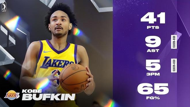 不过本赛季至今,巴夫金的健康状况有所好转,他为湖人下属发展联盟球队南湾湖人出战14场。这位身高1米93的后卫在G联盟赛场打出了亮眼数据,场均出战34.5分钟,贡献26.7分、4.9个篮板、4.3次助攻、1.3次抢断和1.3次封盖,投篮三项命中率更是达到精英级别的51.9%/40.9%/90.2%,达到180俱乐部标准。他在G联赛打出过单场41分9助攻和42分6篮板这样的表现。