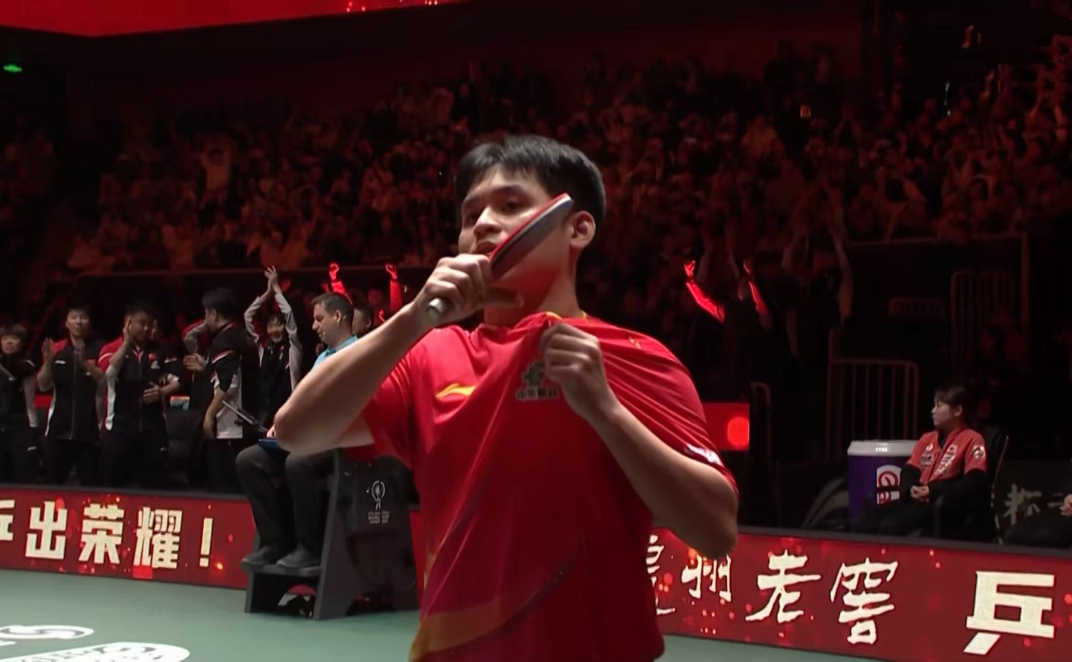 第3局,林诗栋4-1领先,张本智和追至3-4,林诗栋得到1分5-3领先双方交换场地。中后段林诗栋连续得分,10-4拿到全场比赛6个冠军点!张本智和挽救一个冠军点,林诗栋还是以11-5的比分赢下第三局,至此帮助国乒队伍总分8-1轻取日本队,实现混合团体世界杯的三连冠!