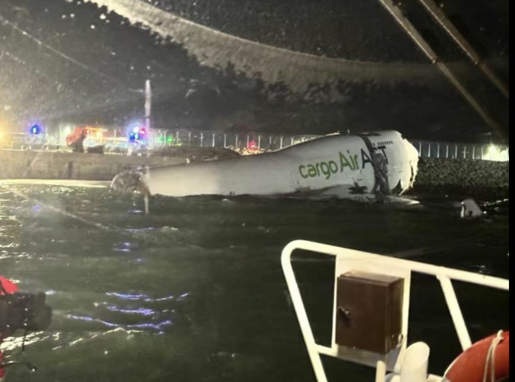 20日凌晨3时50分许,一架货机在香港国际机场降落后滑出跑道坠海。事故现场视频显示,飞机机身浸在海中,逃生出口弹出,机翼折断。