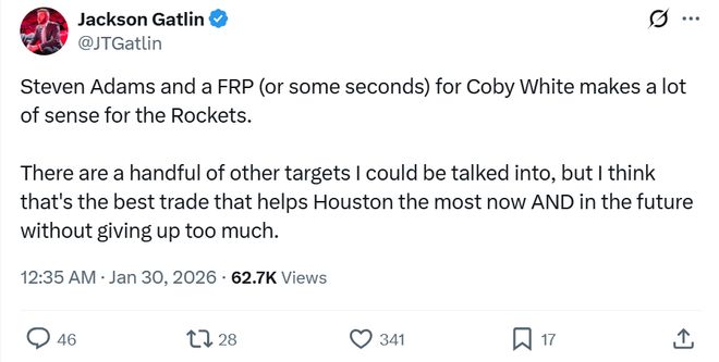 其中火箭媒体人Jackson Gatlin更是支招火箭队,可以尝试打包赛季报销的亚当斯+一枚首轮签或者数枚次轮签尝试追求科比怀特。