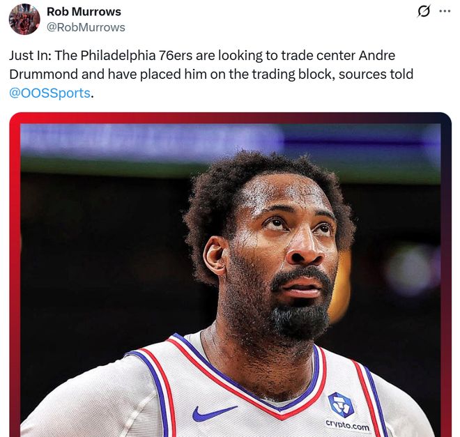 消息来自于美媒OOSSports记者Rob Murrows,他曝出76人队正在听取相关报价,火箭队对其颇感兴趣。