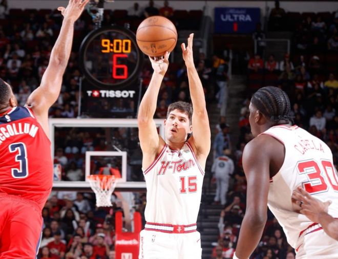 伊森这也太准了,两队维持15分左右分差,后半段亚当斯劈扣+杜兰特反击喂饼小贾,奥克吉和杜兰特随后在外线火力全开,节末申京军训萨尔,半场火箭81-54领先奇才!下半场初段,奥克吉顶着萨尔补篮打进,不过此后火箭明显懈怠,奇才在萨尔带领下,单节疯狂追分,火箭开始增加失误,三节结束时,火箭103-87奇才。决战第四节,阿门和伊森下三分雨,谢泼德高难度拉杆,伊森自投自抢,此后谢泼德三分球杀死比赛悬念。最终火箭135-112大胜奇才,送奇才10连败!