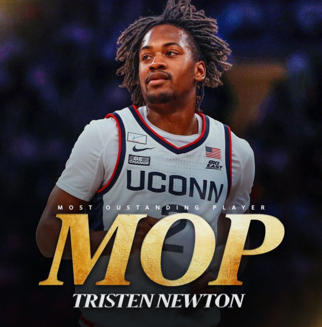 特里斯滕-牛顿(2001年4月26日出生),身高1米96,体重86公斤,司职得分后卫,曾在康涅狄格大学夺得2023年和2024年NCAA全国总冠军。牛顿高中就读于得克萨斯州埃尔帕索市的伯吉斯高中,该校球队经常长途跋涉,前往得州各大都会区与顶尖球队交手。高中生涯,牛顿累计得到3266分,高三赛季场均砍下37.2分,高居全州得分榜首位。