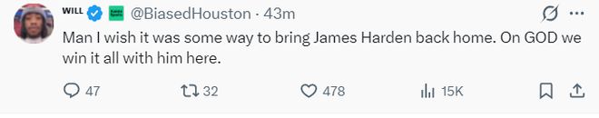 休媒Will:兄弟们,我真的希望哈登能被交易回我们身边,如果有了他,我们就能赢得一切。