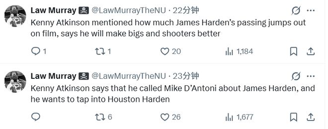 阿特金森还表示,他已经就哈登的相关事宜致电咨询了迈克-德安东尼,并且他希望能激活哈登在火箭效力时期的那种统治状态。
