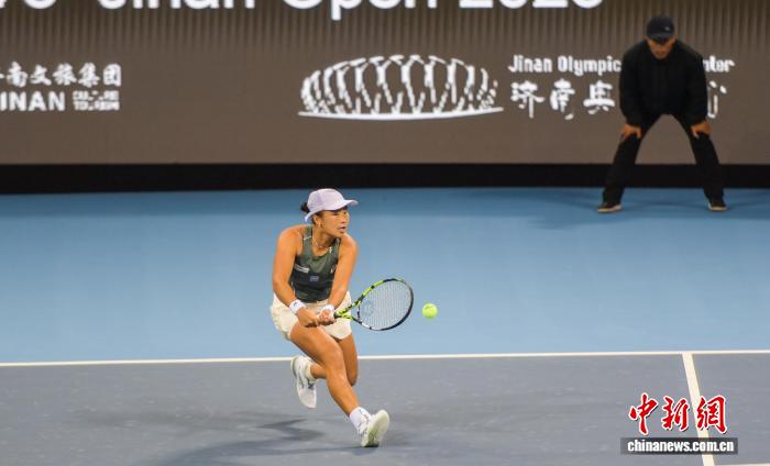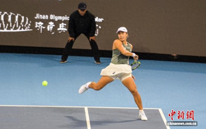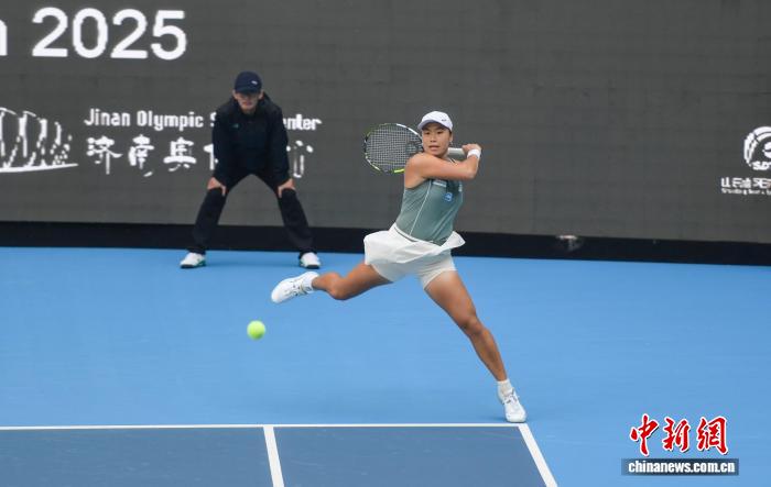 10月18日,2025国缘V3济南国际网球公开赛女子单打决赛在山东济南举行,印度尼西亚选手曾丽美以6-4、4-6、6-4的成绩战胜匈牙利选手邦达尔,夺得女子单打冠军。图为印度尼西亚选手曾丽美在比赛中。 中新社记者 张勇 摄