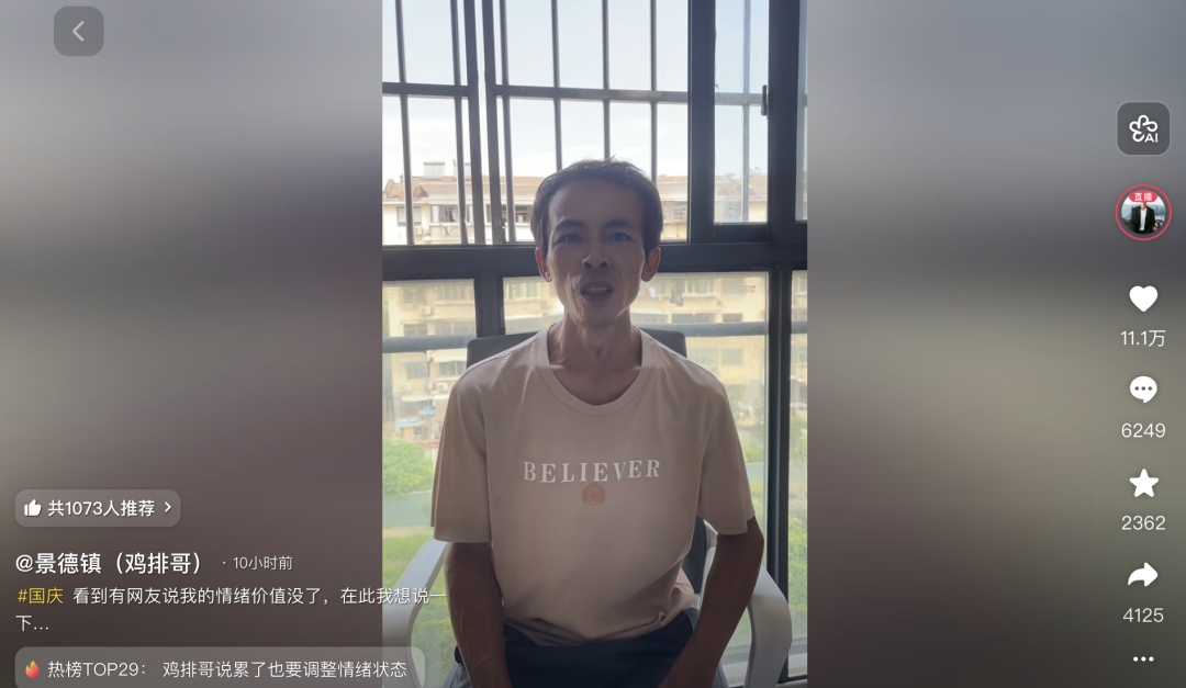3日,“鸡排哥”在个人社交账号发布视频表示: