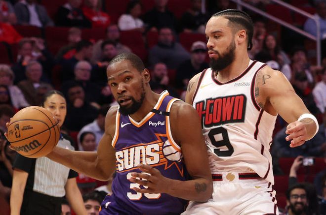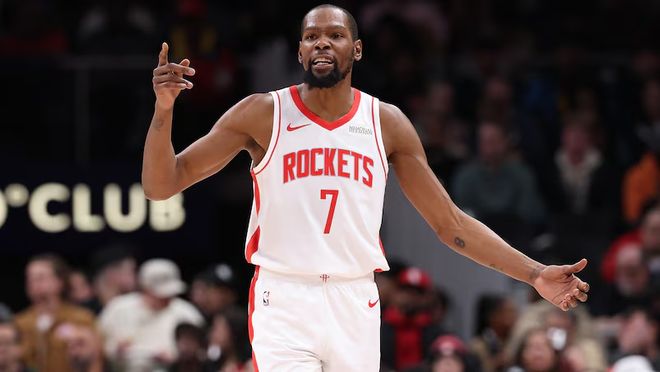 37岁的杜兰特在加盟火箭队的首个赛季里,依旧保持着顶级的“三级别得分手”水准。他出战的比赛中场均贡献26.5分、5.4个篮板和4.5次助攻,三项命中率分别达到51.4%、40.8%和88.6%。