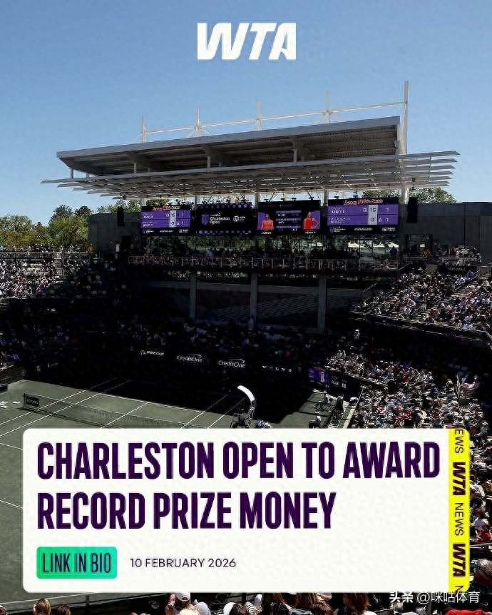 2月11日,WTA官方宣布,2026年的查尔斯顿公开赛奖金翻倍,本届赛事将提供约250万美元的资金,其中包括230万美元的现场球员奖金,另外20万美元将捐赠至WTA球员福利项目。