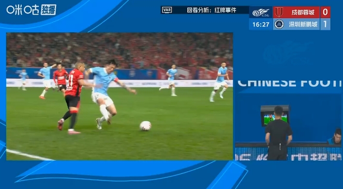 2026赛季中超联赛揭幕战,成都蓉城主场迎战深圳新鹏城,比赛刚开始第18分钟,姜至鹏就因为疑似肘击韦林顿,裁判员出示黄牌,但是VAR介入后裁判员改判红牌,最终多打一人的成都蓉城主场5:1大胜深圳新鹏城。