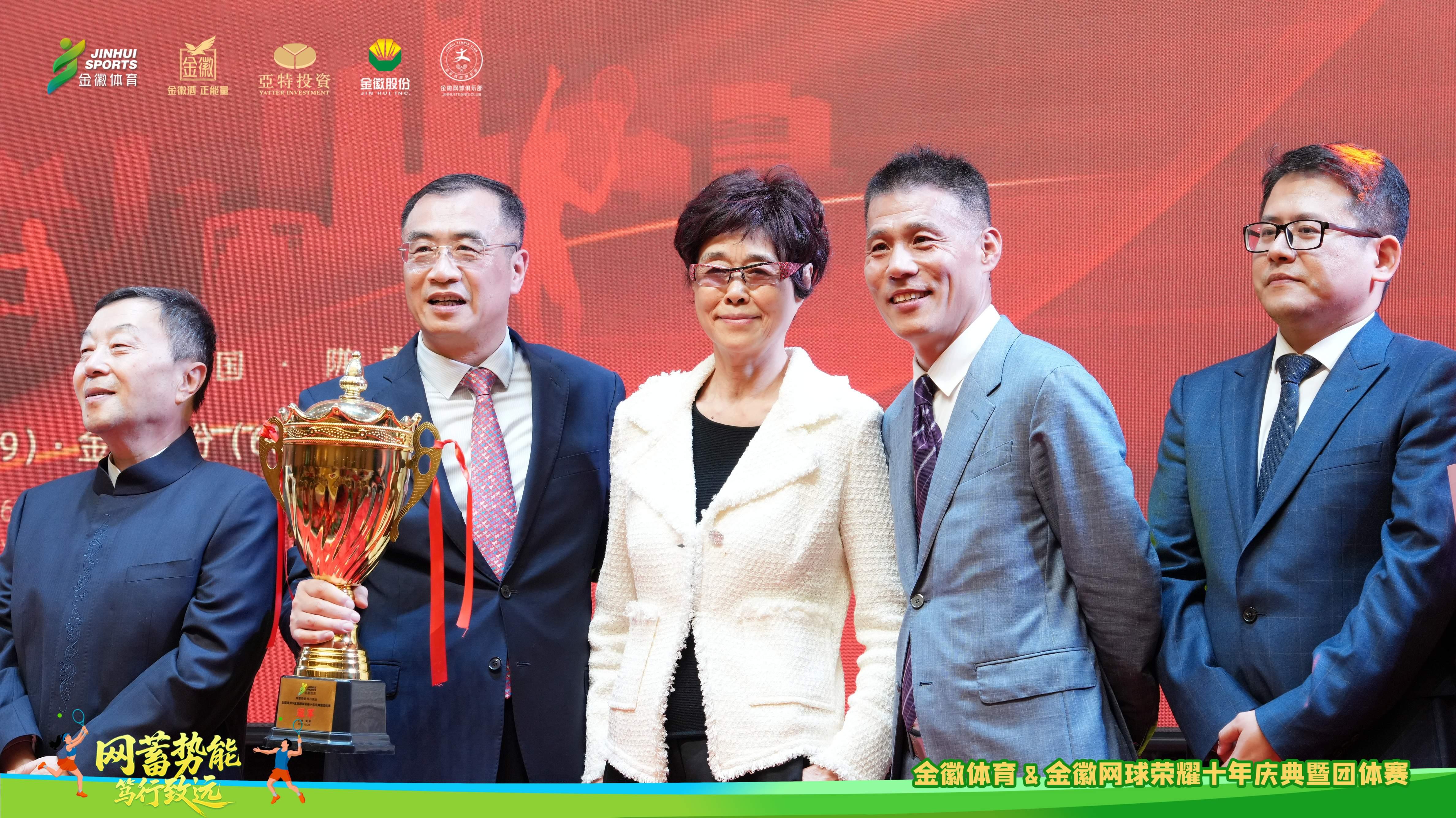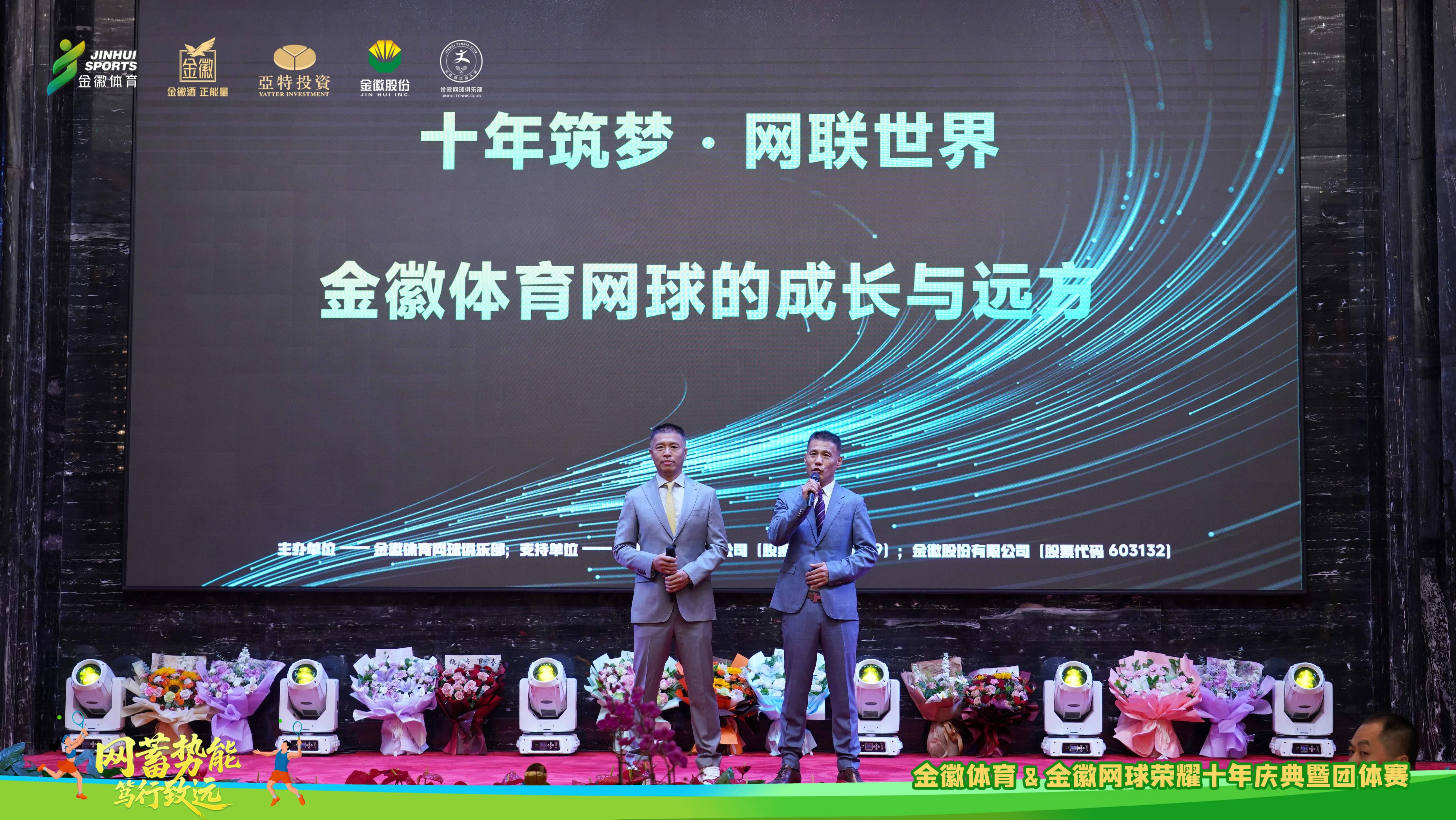 回溯金徽体育十年征程,杜楠主席始终以 “赛场” 为起点,用热爱编织体育生态的经纬。十周年庆典期间,她频繁驻足赛场 —— 见证郑州队绝境逆转时的呐喊,感受女子队寒夜搏杀的坚韧,目光里满是对竞技活力的珍视;她也深入会长座谈会、巅峰论坛,直言:“体育生态不是孤立的赛场,而是让每个热爱网球的人都有归属。未来 3~5 年我们必定要破局创新,预知未来,链接世界。”晚宴灯光亮起时,杜楠拿起话筒,真情流露:“你来了,我来了,我们来了 —— 对十年的感悟,满是感激与感恩,也被大家的热情深深鼓舞。” 作为金徽体育的领航者,她的话语让每一位 “金徽人” 都感受到了归属感与使命感。最终,“网蓄势能,笃行致远,预知未来,链接世界” 的口号响彻全场,为这场十周年庆典画上了圆满的句号,也为金徽体育的下一个征程吹响了出发的号角!