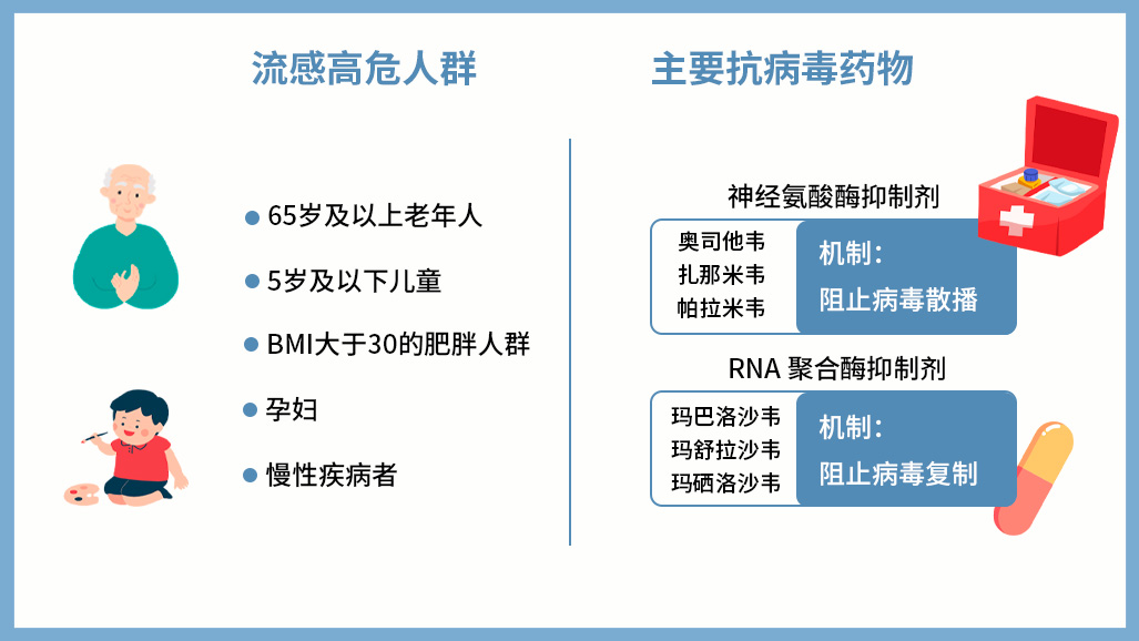 目前,临床常用抗流感病毒药物有几大类,通过不同机制发挥作用。神经氨酸酶抑制剂(如奥司他韦、扎那米韦等)阻断病毒复制传播,RNA 聚合酶抑制剂(玛巴洛沙韦、法维拉韦)抑制病毒核酸合成,血凝素抑制剂(阿比多尔)阻止病毒侵入细胞。奥司他韦口服便捷,适用于成人及 1 岁以上儿童;扎那米韦为吸入剂,哮喘患者禁用;玛巴洛沙韦改善乙型流感症状更优。
