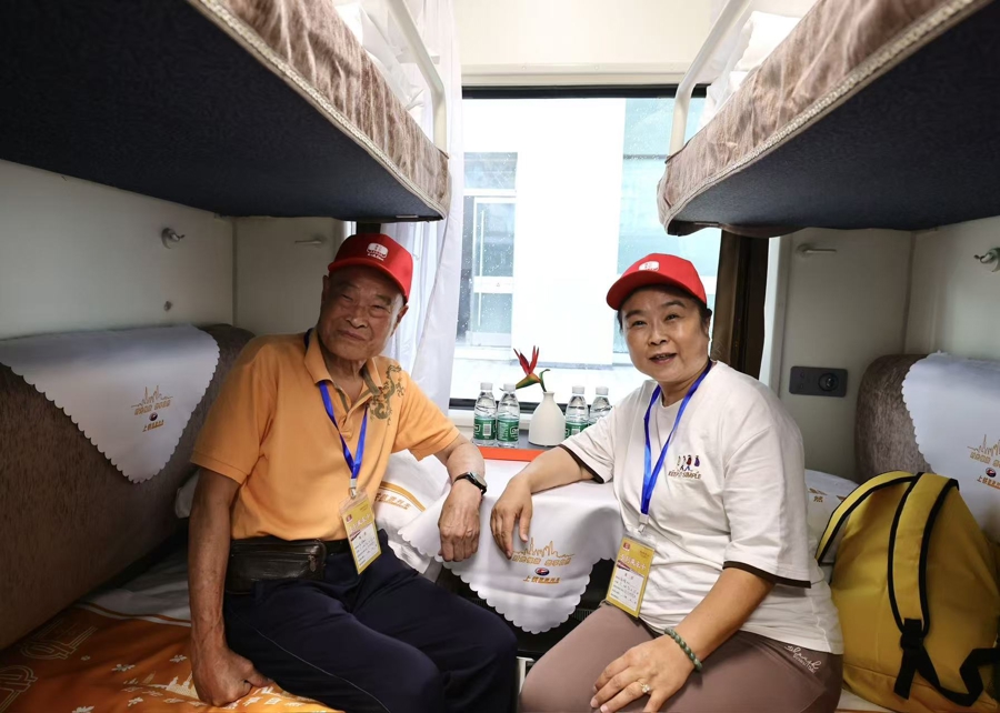 朱女士带着86岁的父亲一起出游,在为期18天的行程中,他们将先抵达西宁,欣赏青海湖风光,随后游历新疆全域。朱女士表示,自己和父亲都是旅游爱好者,每年会安排多次出游。这次的新疆专列团对年龄没有设限,火车上的适老化设计,在长途旅行中对老年人也很友好。