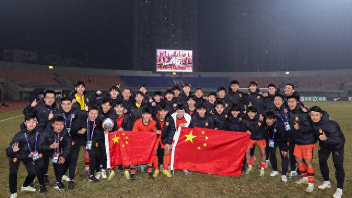 刚过去的这十天,中国球迷无疑是幸福的。连续五场2026年U17亚洲杯预选赛A组对决,涌入铜梁龙足球场和永川体育中心的中国球迷都如同过节般在看台上欢唱,让他们不知疲倦的最大动力,便是球场上的这支中国U16男足。从首战4比0胜巴林,到14比0胜东帝汶、12比0胜文莱、8比0胜斯里兰卡,再到昨晚以4比0完胜小组二档球队孟加拉国,U16国足以五战全胜狂进42球的佳绩,轻松晋级明年的U17亚洲杯。中国国字号球队已经很久没有经历过如此轻松的大赛预选赛了。