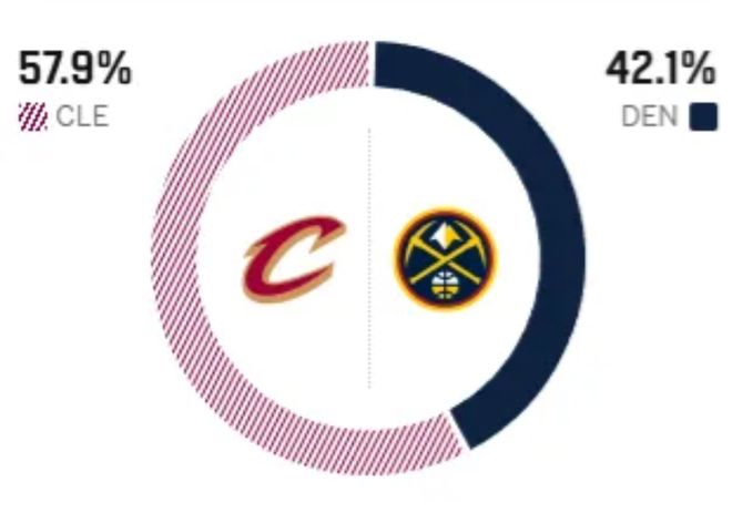 赛前,美媒ESPN对本场比赛进行了预测,掘金胜率仅有42.1%,骑士胜率意外高达57.9% ,占据优势。