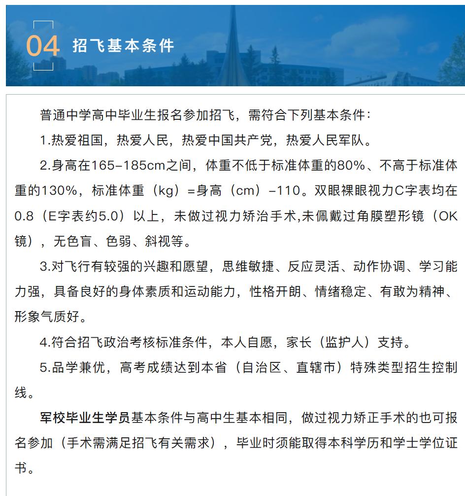 招飞基本条件 图源“东部空军招飞”公众号