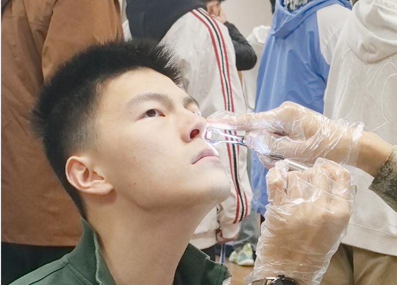 不少同学第一关就败下阵来,一位带学生来参加初选检测的高中老师告诉记者:“往年有学生特别希望参加空军,就佩戴了角膜塑形镜,也就是我们平时说的OK镜,但这都是不符合要求的。”此外,还要检测学生是否有斜视、色弱等,在耳鼻喉科环节,检测人员要对学生是否晕车、是否有严重鼻炎等方面进行检查。