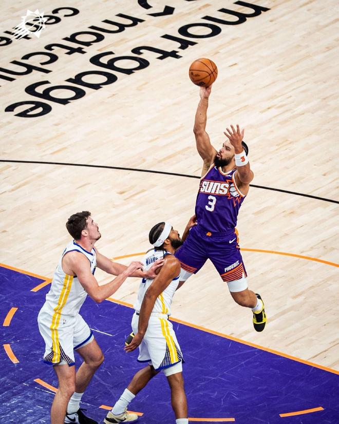 科尔请求暂停,波杰姆斯基单打命中,库里轰进高难度远投,勇士得以止血。邓恩、古德温相继冲击篮下得分,科尔再次请求暂停。波杰姆斯基上篮得分,布克2罚1中。第3节打完,勇士以71比70领先。