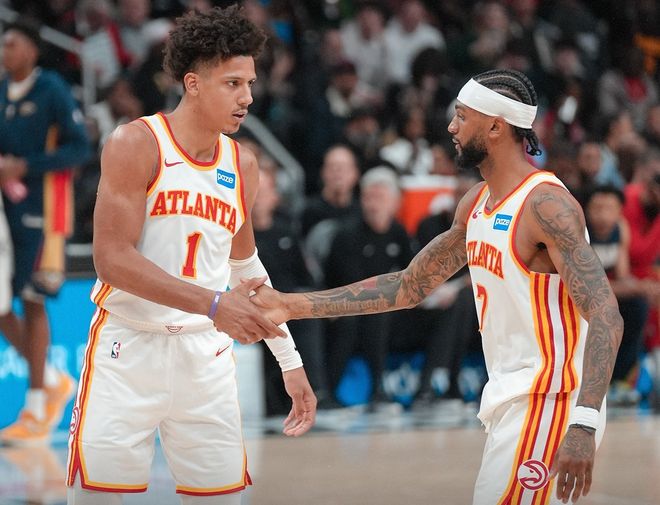 老鹰方面,杰伦约翰逊场均可以贡献23分10.6个篮板7.9次助攻,沃克场均19.8分,麦科勒姆场均18.7分,奥孔古场均15.9分7.8个篮板,库明加加盟后2场比赛合计贡献了44分。