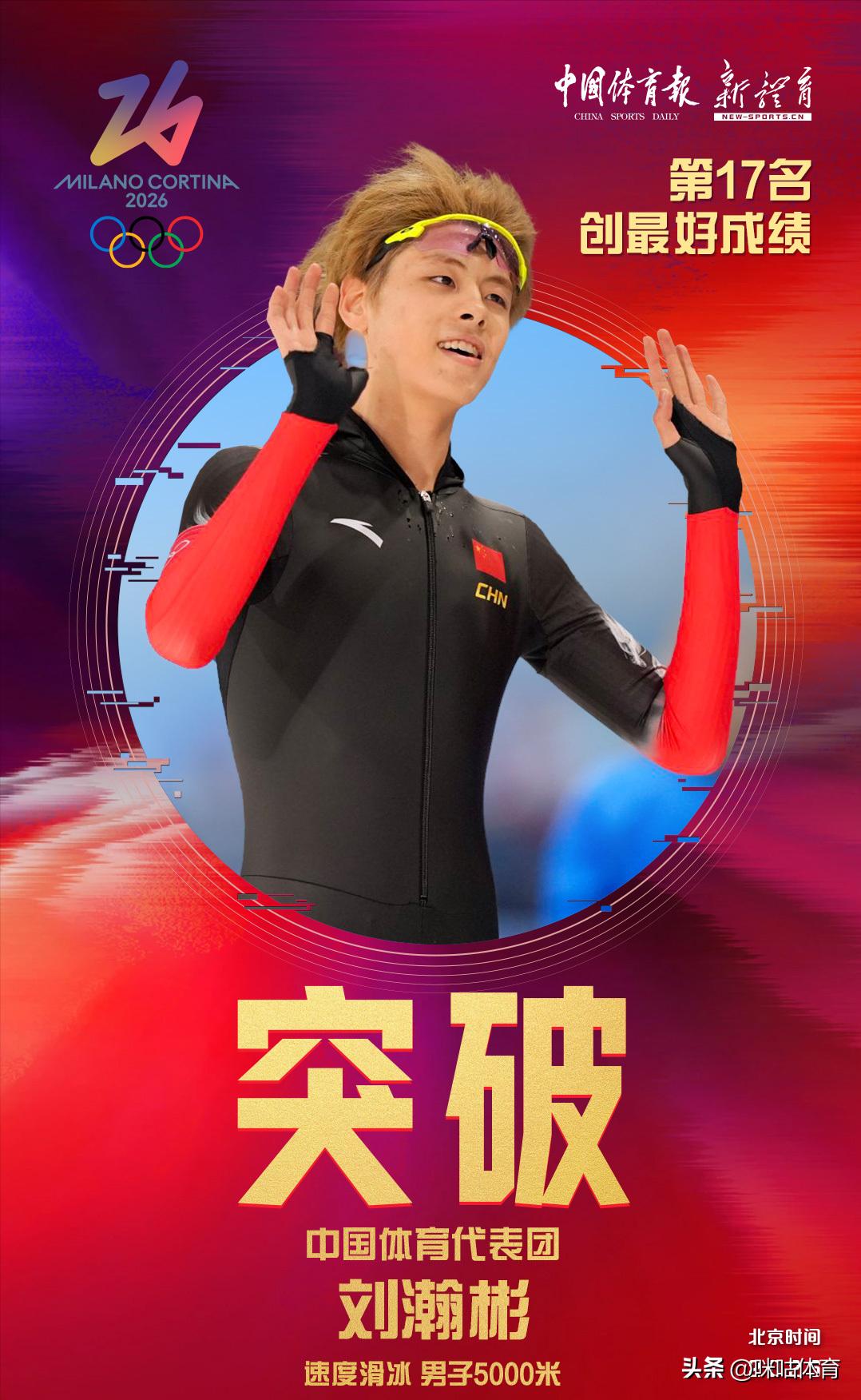 如今,19岁的刘瀚彬挺身而出,在米兰冬奥会该项目决赛中,他以6分24秒25的成绩冲过终点,在全部20名参赛选手中排名第17位,不仅大幅超越高雪峰的历史成绩,更一举刷新中国体育代表团在该项目的冬奥会最好成绩。在此之前,该项目历史最好成绩为是刘龑飞在1992年阿尔贝维尔冬奥会取得的第24名。