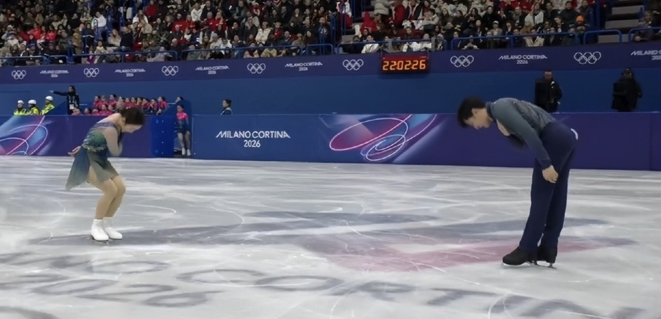 有媒体称赞道:“米兰冬奥会花样滑冰双人自由滑,中国组合隋文静 /韩聪以一曲《只此青绿》完美收官,自由滑得分135.98 分。冰上翩跹如画卷舒展,将东方美学演绎到极致。这是他们在米兰冬奥赛场的最后一舞,全力以赴、不留遗憾。致敬一代传奇,致敬永远的葱桶组合!”