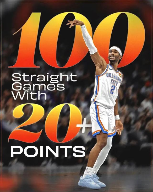 此役灰熊虽然6人得分上双,但却无一爆点,而且全队的防守拿亚历山大毫无办法。本场比赛亚历山大出战36分钟20投11中三分4中3罚球6中6,而且还摘下10个篮板送出8次助攻和4次抢断,不仅表现出超强的个人终结能力,而且在防守端也是压迫性十足。更值得一提的是:亚历山大创造连续100场比赛得分20+里程碑纪录,成为NBA历史第二人,仅次于张伯伦连续126场得分20+纪录。而历史得分王詹姆斯这一纪录只有49场,惨遭亚历山大碾压。
