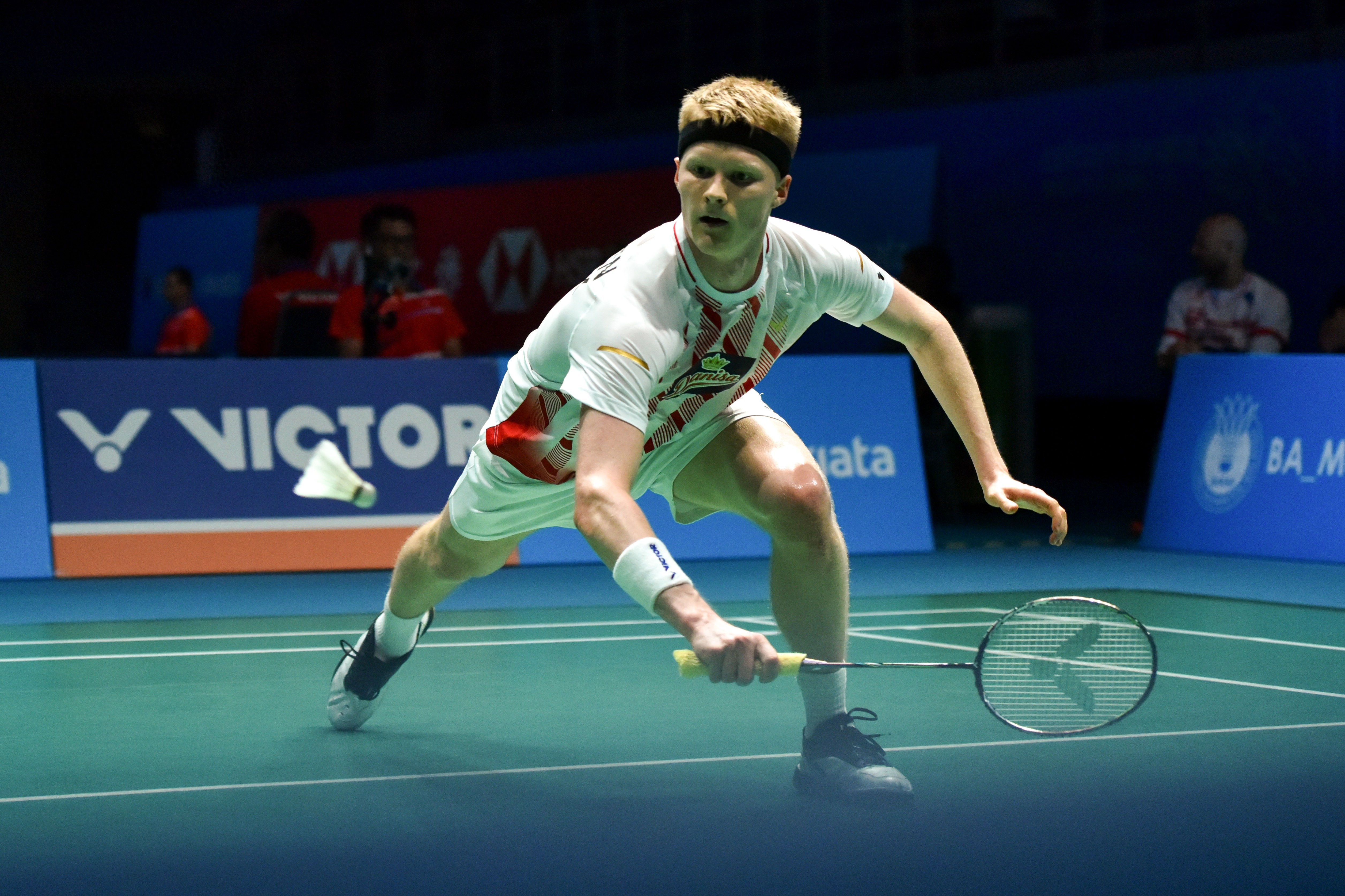 梁峻豪21-17, 13-21, 21-18赢下西本拳太晋级男单16强,为去年世界锦标赛的失利完成复仇。下一场迎战日本选手渡边航贵,对方则以21-8, 21-12爆冷淘汰了上赛季八进巡回赛四强斩获2冠3亚的世界第三安东森,终结交手5连败。