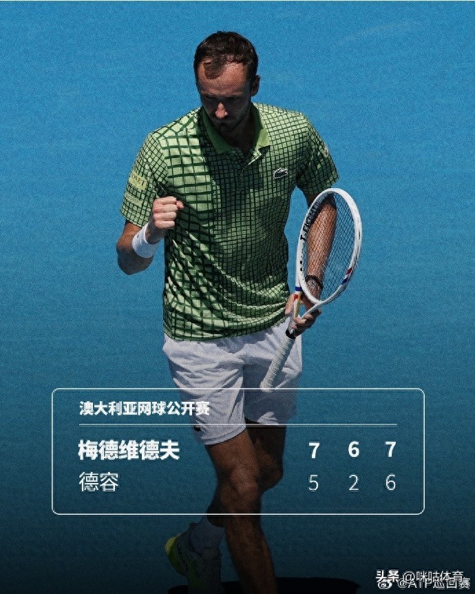 2026年澳大利亚网球公开赛男单正赛首轮继续在墨尔本公园展开角逐。赛会11号种子、俄罗斯名将丹尼尔·梅德韦杰夫状态稳定,以3-0的比分完胜荷兰选手塔伦·德容,顺利取得本届澳网开门红,三局具体比分分别为7-5、6-2、7-6(2)。
